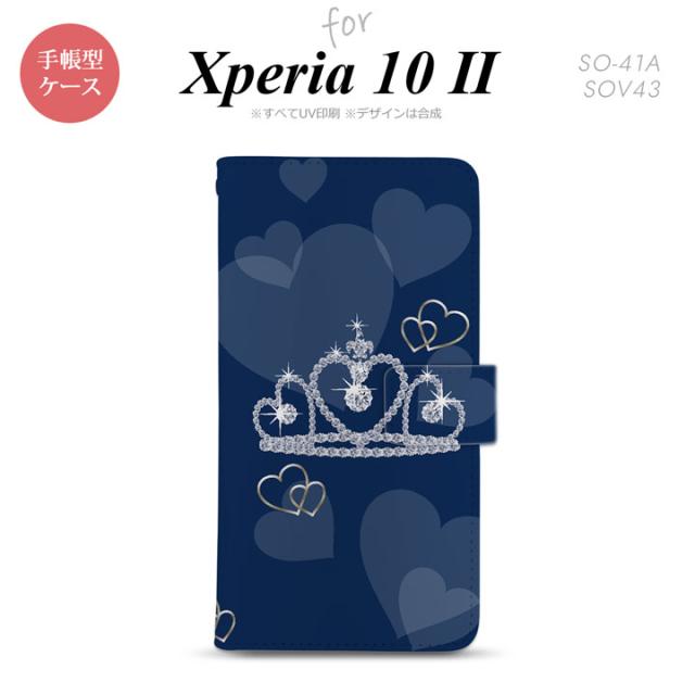Xperia10 II 手帳型 スマホケース 全面印刷 おしゃれ ストラップホール有り クラウン 青