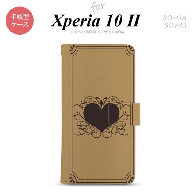 Xperia10 II 手帳型 スマホケース 全面印刷 おしゃれ ストラップホール有り ハート 飾り ベージュ