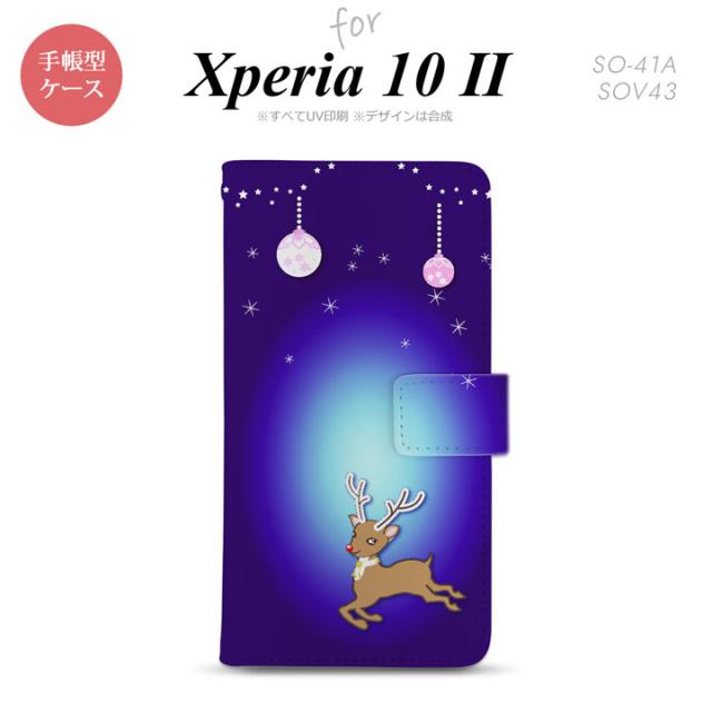 Xperia10 II 手帳型 スマホケース 全面印刷 おしゃれ ストラップホール有り トナカイ 青