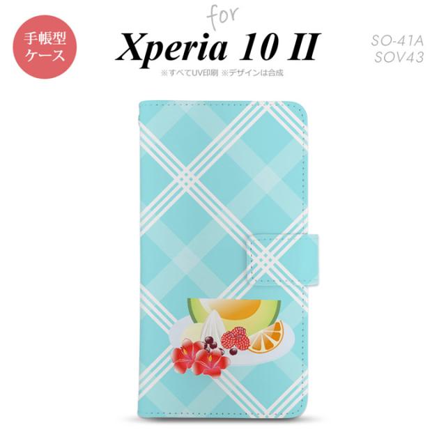 Xperia10 II 手帳型 スマホケース 全面印刷 おしゃれ ストラップホール有り フルーツ カクテル