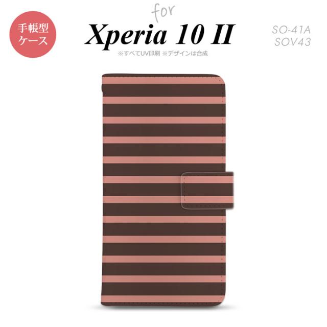 Xperia10 II 手帳型 スマホケース 全面印刷 おしゃれ ストラップホール有り ボーダー 茶 ピンク