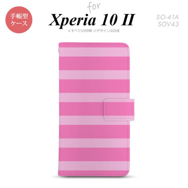 Xperia10 II 手帳型 スマホケース 全面印刷 おしゃれ ストラップホール有り ボーダー 大 ピンク