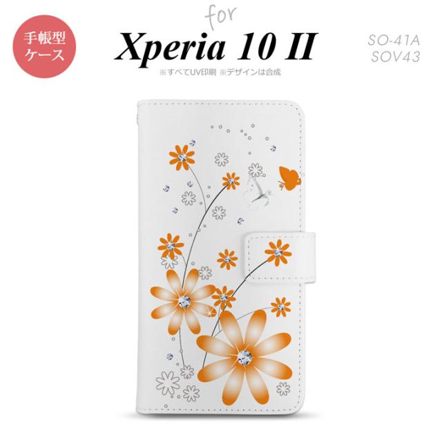 Xperia10 II 手帳型 スマホケース 全面印刷 おしゃれ ストラップホール有り 花柄 ガーベラ オレンジ