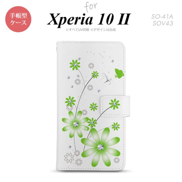 Xperia10 II 手帳型 スマホケース 全面印刷 おしゃれ ストラップホール有り 花柄 ガーベラ 緑