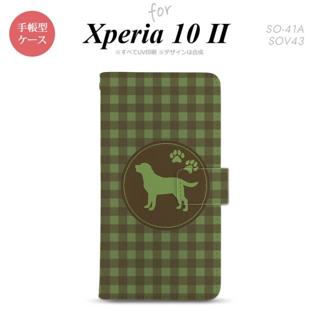 Xperia10 II 手帳型 スマホケース 全面印刷 おしゃれ ストラップホール有り 犬 ラブラドール レトリバー 緑