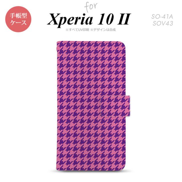 Xperia10 II 手帳型 スマホケース 全面印刷 おしゃれ ストラップホール有り 千鳥 格子 小 紫