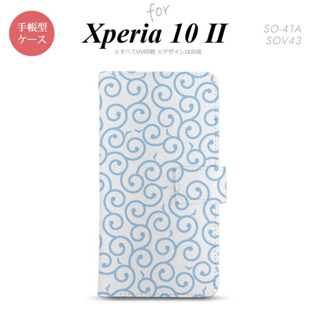 Xperia10 II 手帳型 スマホケース 全面印刷 おしゃれ ストラップホール有り 唐草 クリア 水色