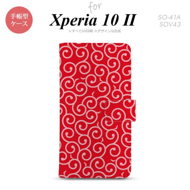 Xperia10 II 手帳型 スマホケース 全面印刷 おしゃれ ストラップホール有り 唐草 赤 ピンク