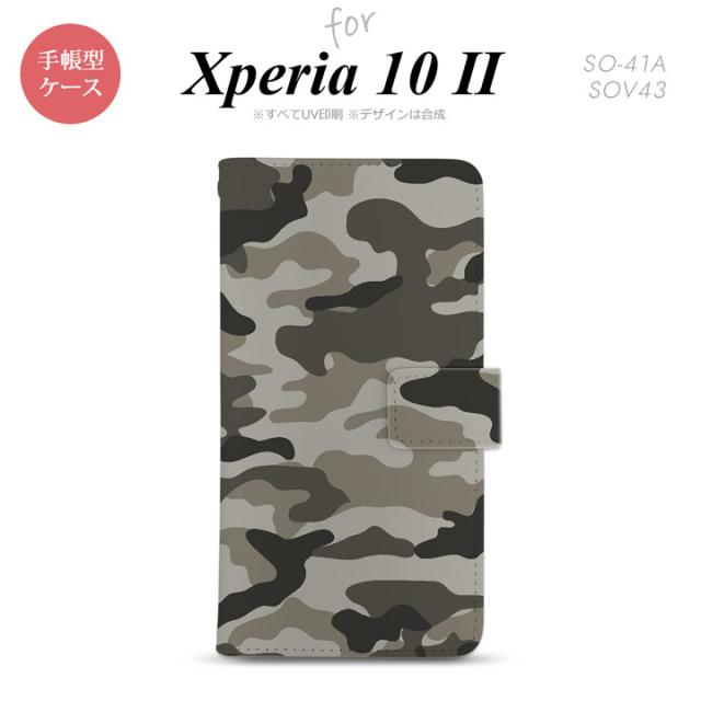 Xperia10 II 手帳型 スマホケース 全面印刷 おしゃれ ストラップホール有り ウッドランド 迷彩 茶