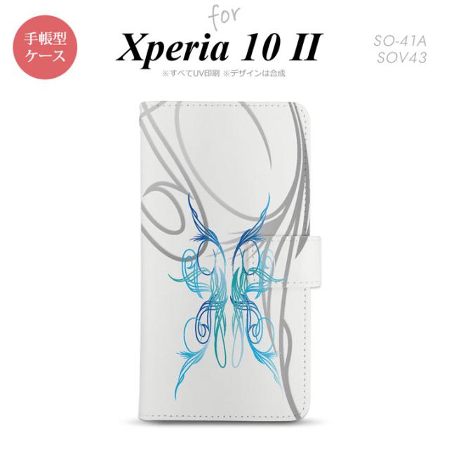 Xperia10 II 手帳型 スマホケース 全面印刷 おしゃれ ストラップホール有り ピンスト 白 青