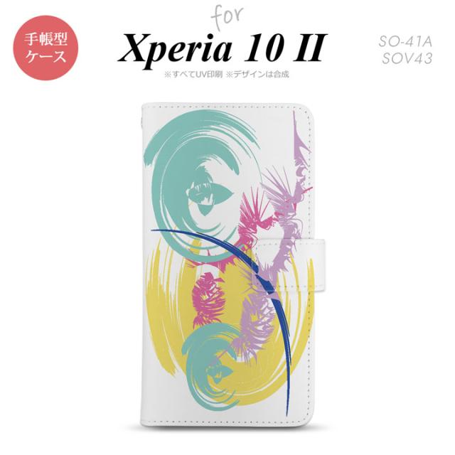Xperia10 II 手帳型 スマホケース 全面印刷 おしゃれ ストラップホール有り アート 白 黄