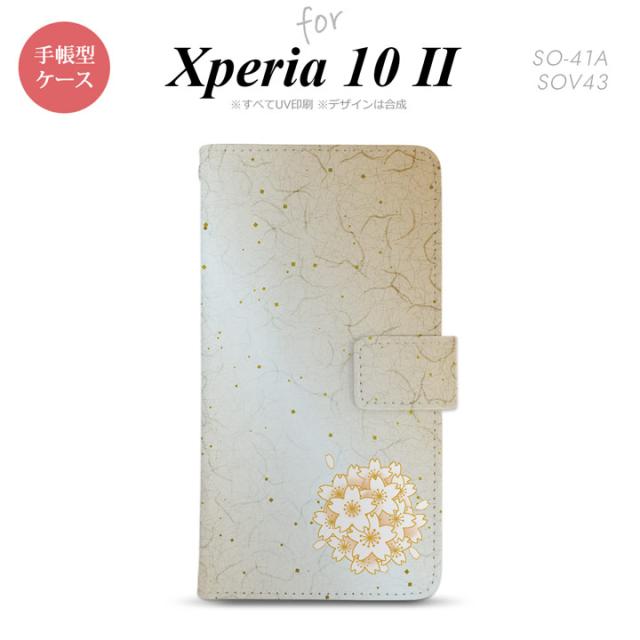 Xperia10 II 手帳型 スマホケース 全面印刷 おしゃれ ストラップホール有り 和柄 サクラ 黄