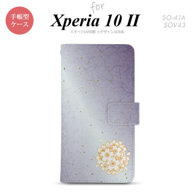 Xperia10 II 手帳型 スマホケース 全面印刷 おしゃれ ストラップホール有り 和柄 サクラ 紫