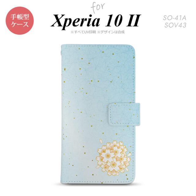 Xperia10 II 手帳型 スマホケース 全面印刷 おしゃれ ストラップホール有り 和柄 サクラ 青