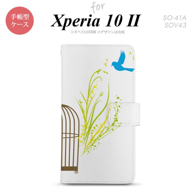 Xperia10 II 手帳型 スマホケース 全面印刷 おしゃれ ストラップホール有り 青い鳥 黄