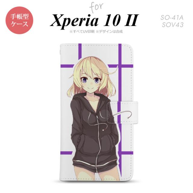 Xperia10 II 手帳型 スマホケース 全面印刷 おしゃれ ストラップホール有り 女の子 キャラ 紫