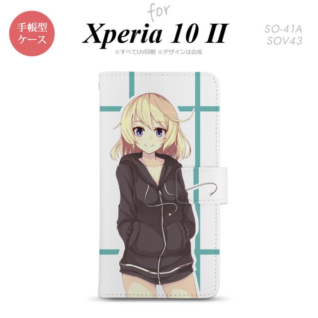 Xperia10 II 手帳型 スマホケース 全面印刷 おしゃれ ストラップホール有り 女の子 キャラ 水色