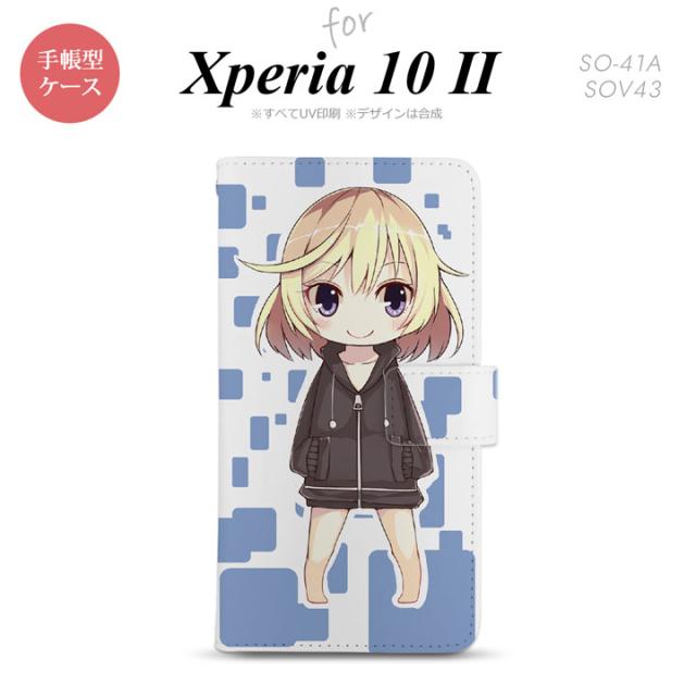 Xperia10 II 手帳型 スマホケース 全面印刷 おしゃれ ストラップホール有り 女の子 キャラ 青
