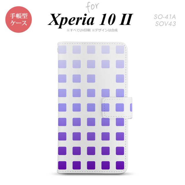 Xperia10 II 手帳型 スマホケース 全面印刷 おしゃれ ストラップホール有り スクエア ドット パープル