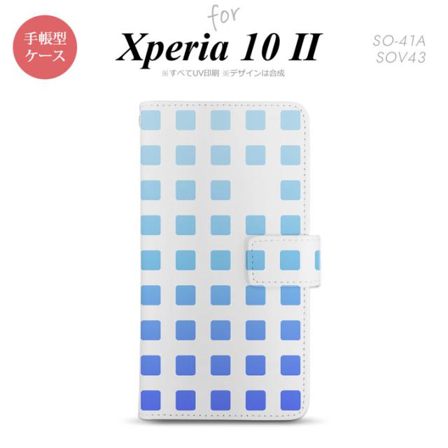 Xperia10 II 手帳型 スマホケース 全面印刷 おしゃれ ストラップホール有り スクエア ドット 青