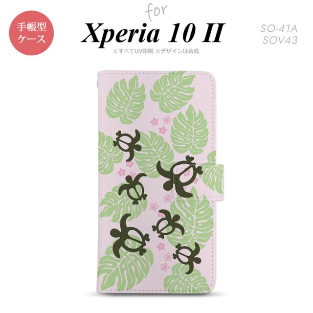 Xperia10 II 手帳型 スマホケース 全面印刷 おしゃれ ストラップホール有り ホヌ 小 ピンク