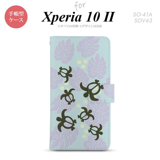 Xperia10 II 手帳型 スマホケース 全面印刷 おしゃれ ストラップホール有り ホヌ 小 青
