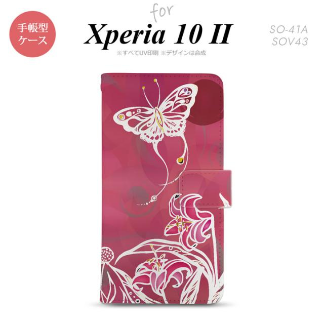 Xperia10 II 手帳型 スマホケース 全面印刷 おしゃれ ストラップホール有り 蝶と花 ピンク