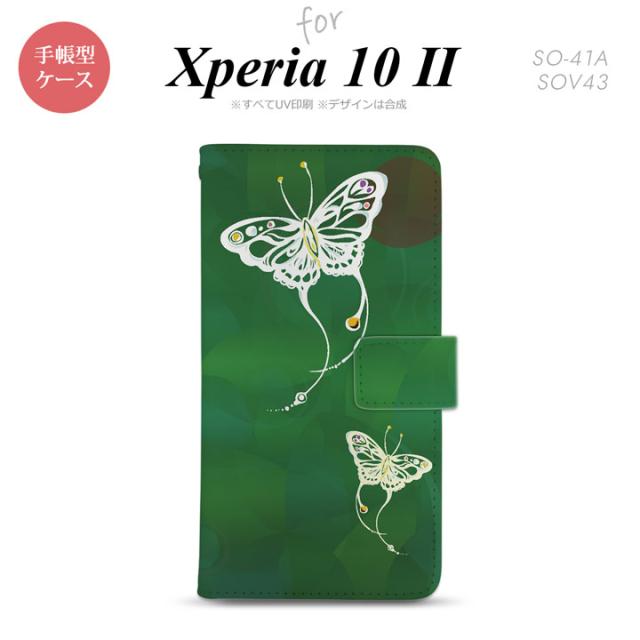 Xperia10 II 手帳型 スマホケース 全面印刷 おしゃれ ストラップホール有り 蝶 和柄 緑