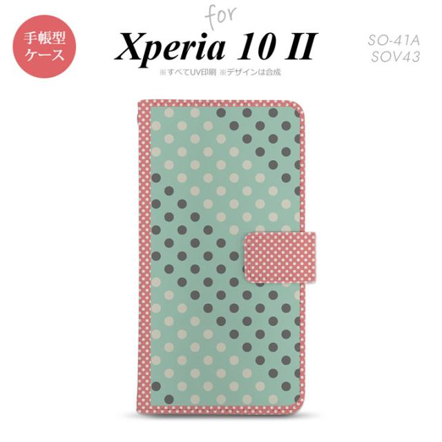 Xperia10 II 手帳型 スマホケース 全面印刷 おしゃれ ストラップホール有り ドット 水玉 ミント ピンク