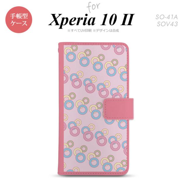 Xperia10 II 手帳型 スマホケース 全面印刷 おしゃれ ストラップホール有り 丸 ピンク