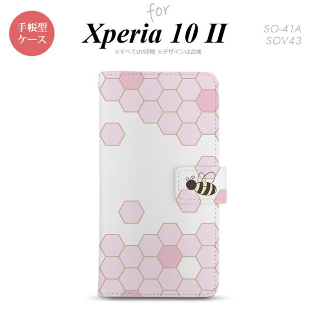 Xperia10 II 手帳型 スマホケース 全面印刷 おしゃれ ストラップホール有り ハニー クリア ピンク