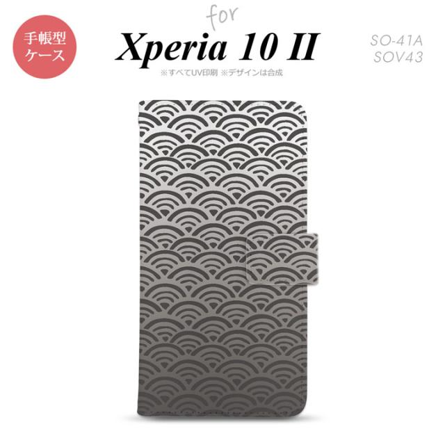 Xperia10 II 手帳型 スマホケース 全面印刷 おしゃれ ストラップホール有り 青海波 グレー