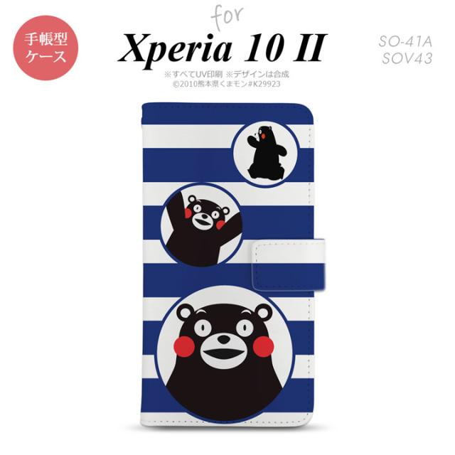 Xperia10 II 手帳型 スマホケース 全面印刷 おしゃれ ストラップホール有り くまモン ボーダー 青