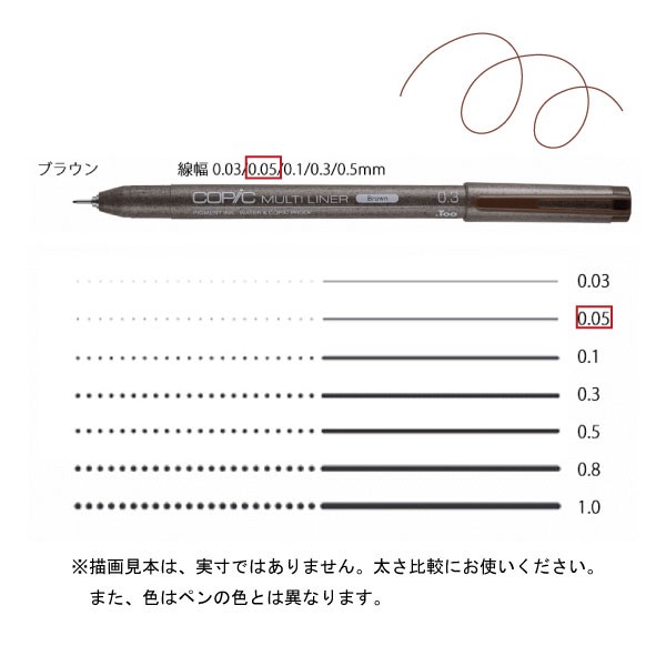 耐水性の顔料インクを採用した、コピックににじまないラインドローイングペンです。