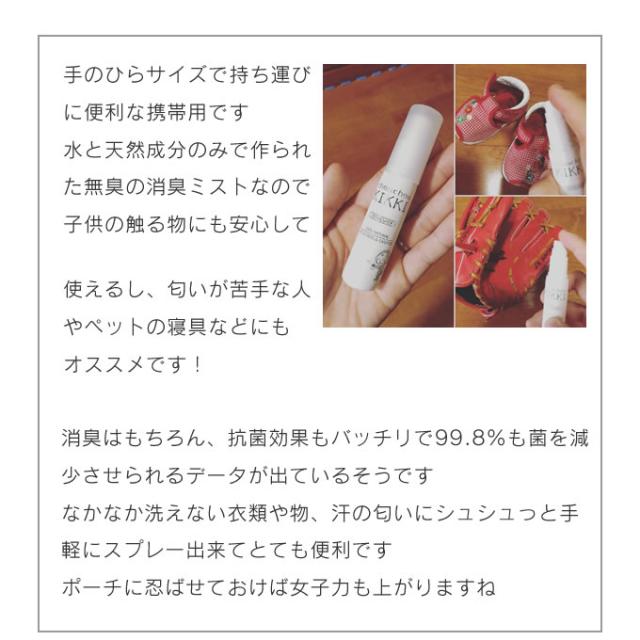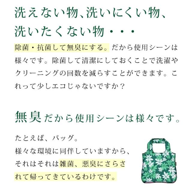 - 気になる場所や箇所に20cm以上はなして数回スプレーしてください。
