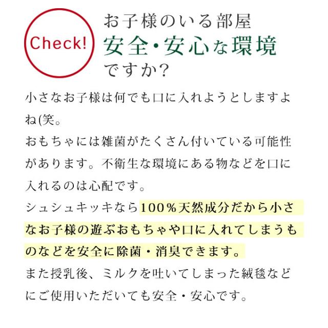 100%天然成分にこだわり、安全安心にニオイの元を分解して消臭・除菌!