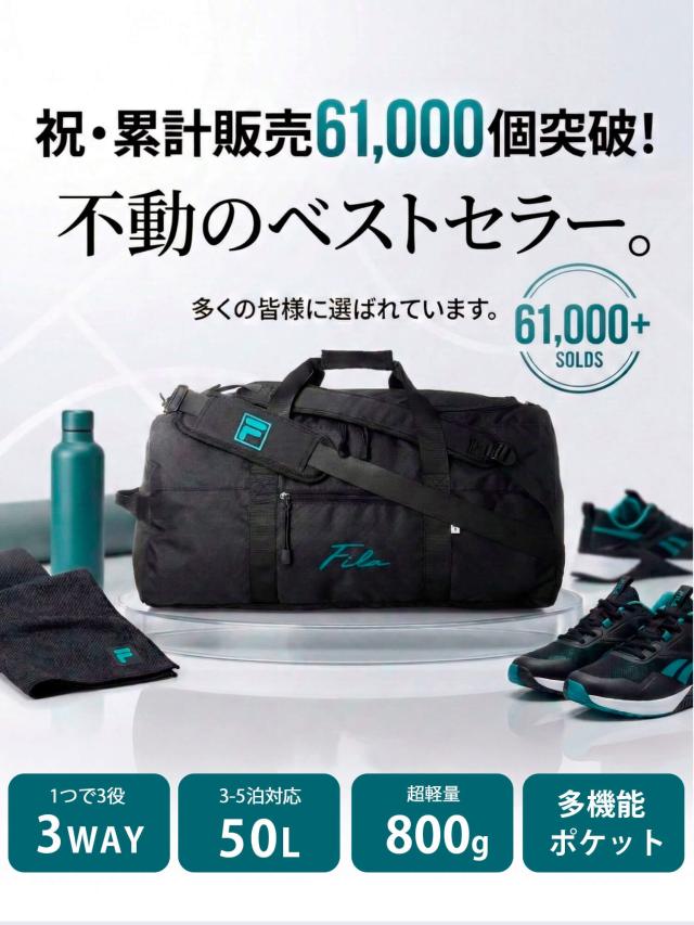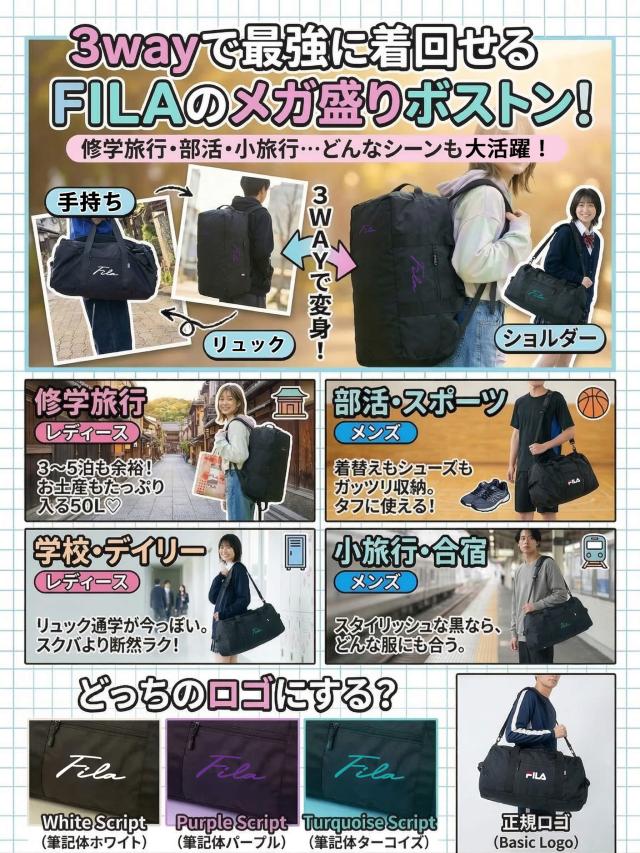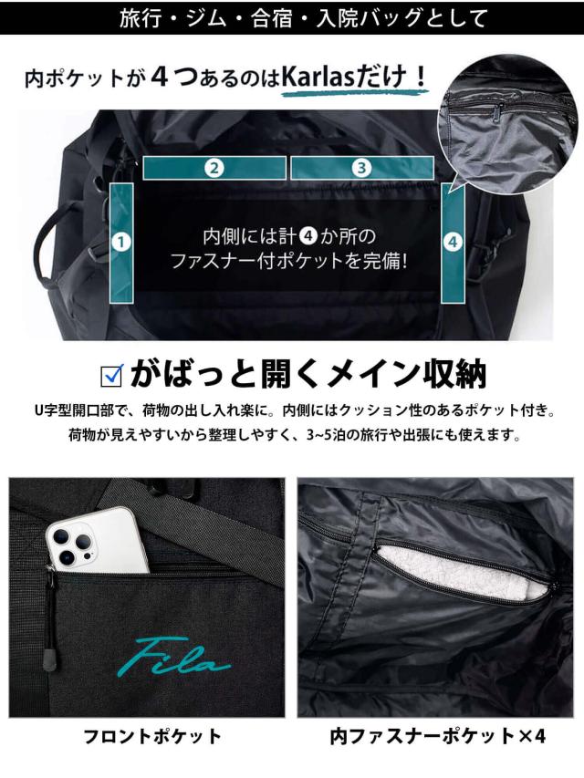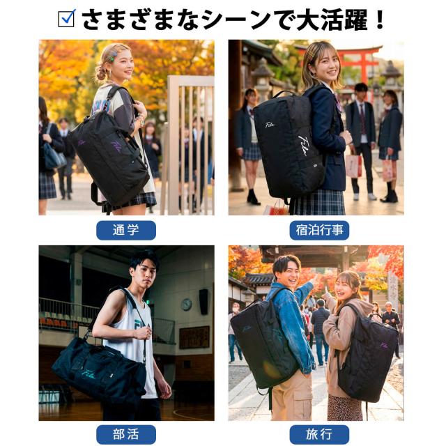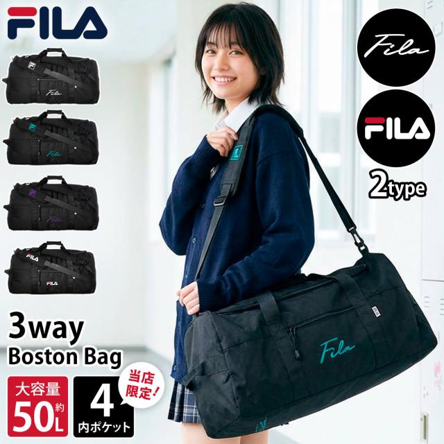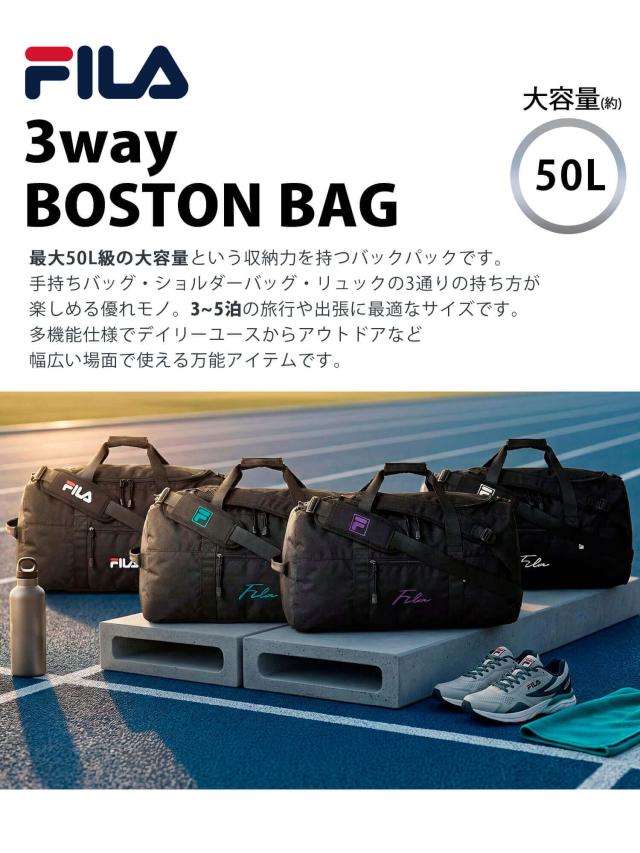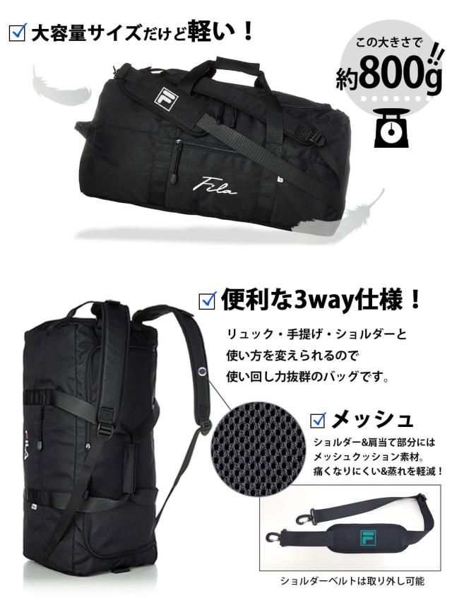 FILA フィラ ボストンバッグ メンズ レディース リュック 大容量 ショルダーバッグ 3way スポーツバッグ 旅行 修学旅行 林間学校 部活 かわいい 男子 おしゃれ 47L トラベルバッグ 斜めがけ 軽量 合宿 高校生 中学生 小学生 大人 ポイント消化 outfit