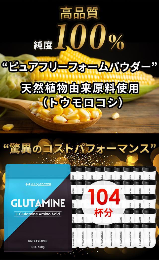 フリーフォーム L-グルタミン 100% 大容量520,000mg [520g 104食分] ハルクファクター グルタミン パウダー 無添加 ノンフレーバー サプリ グルタミンサプリメント グルタミンパウダー【男性 女性 トレーニング ダイエット プロテイン サプリ グルテンフリー 粉末】EAA や HMBとの併用が おすすめ! 人気ランキング 高品質 l グルタミン を高配合!