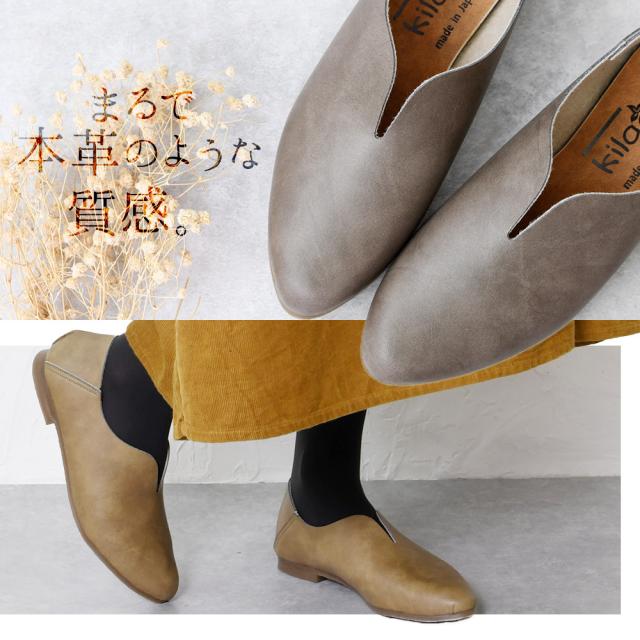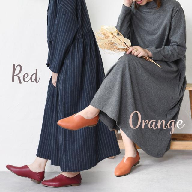 かかとありで脱げないフラットシューズです。