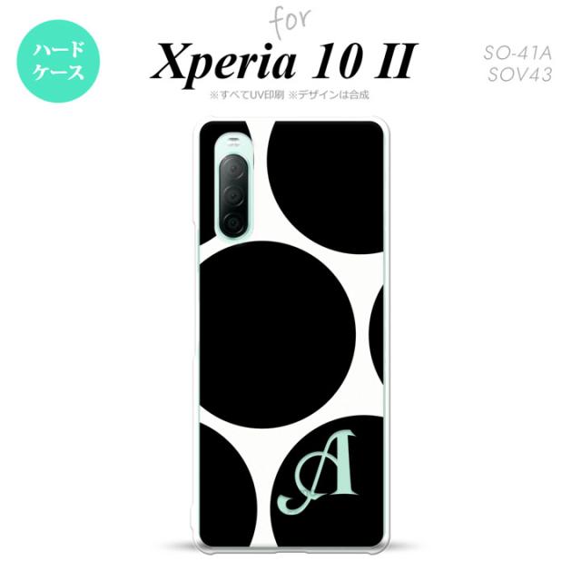 Xperia10 II スマホケース 背面カバー ストラップホール有 ハードケース 水玉 B 白 黒 +イニシャル