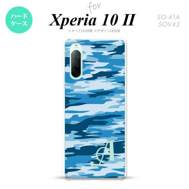 Xperia10 II スマホケース 背面カバー ストラップホール有 ハードケース タイガー 迷彩 C 青 +イニシャル