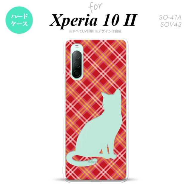 Xperia10 II スマホケース 背面カバー ストラップホール有 ハードケース 猫 チェック A 赤 nk-xp102-951