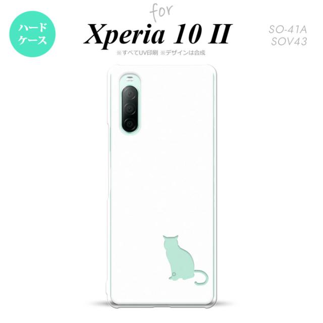 Xperia10 II スマホケース 背面カバー ストラップホール有 ハードケース 猫 影 白 クリア