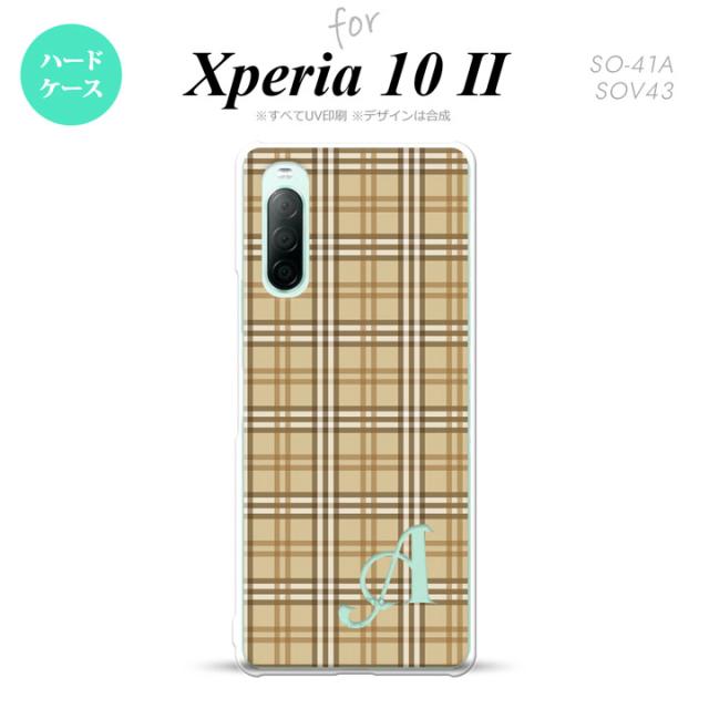 Xperia10 II スマホケース 背面カバー ストラップホール有 ハードケース チェック B ベージュ +イニシャル nk-xp102-444i