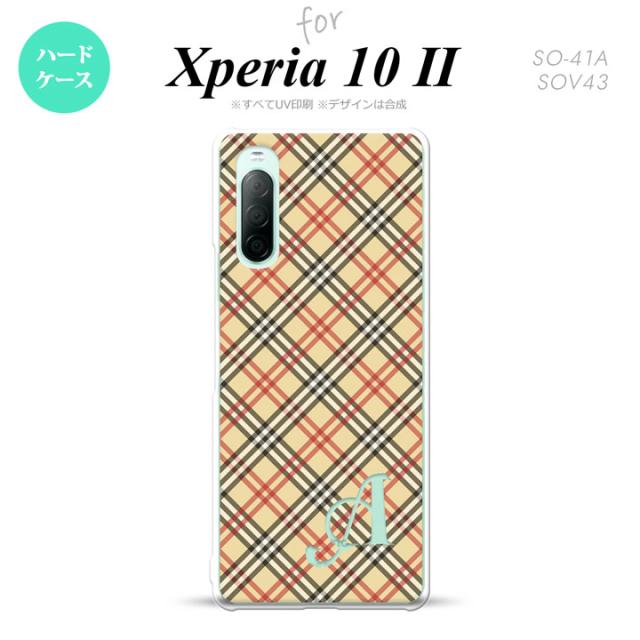 Xperia10 II スマホケース 背面カバー ストラップホール有 ハードケース チェック A ベージュ 赤 +イニシャル nk-xp102-445i