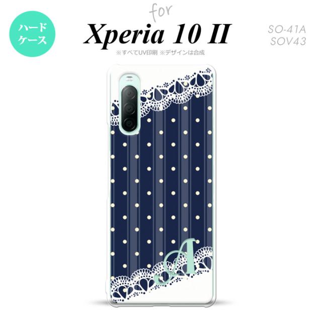 Xperia10 II スマホケース 背面カバー ストラップホール有 ハードケース ドット レース C 紺 +イニシャル nk-xp102-1612i
