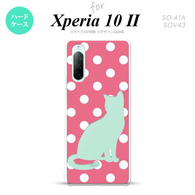 Xperia10 II スマホケース 背面カバー ストラップホール有 ハードケース 猫 水玉 ピンク nk-xp102-967