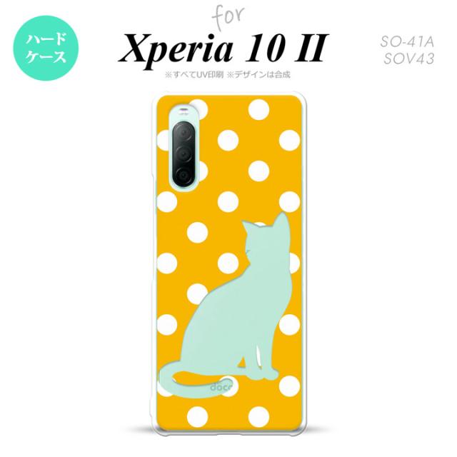 Xperia10 II スマホケース 背面カバー ストラップホール有 ハードケース 猫 水玉 イエロー nk-xp102-969
