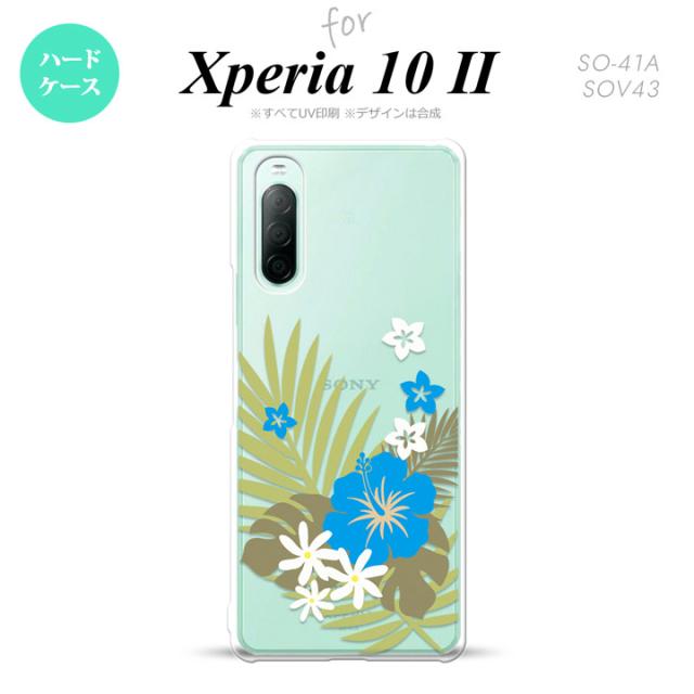 Xperia10 II スマホケース 背面カバー ストラップホール有 ハードケース ハイビスカス D クリア 水色 nk-xp102-1052