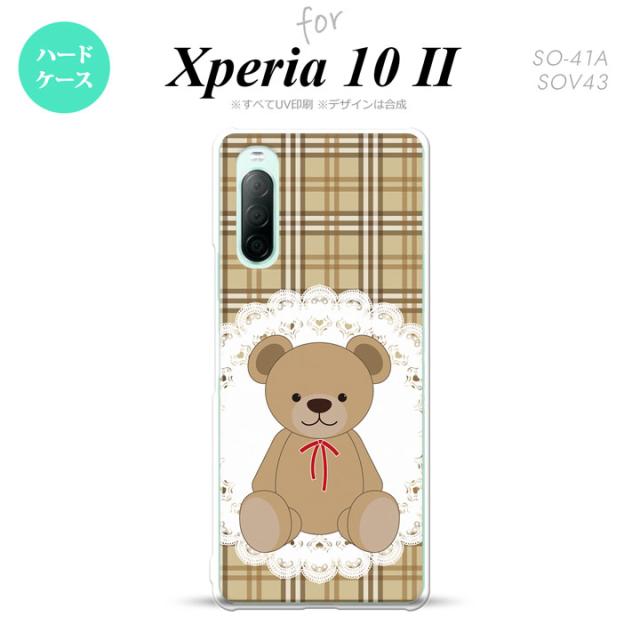 Xperia10 II スマホケース 背面カバー ストラップホール有 ハードケース くま チェック レース 茶 nk-xp102-753